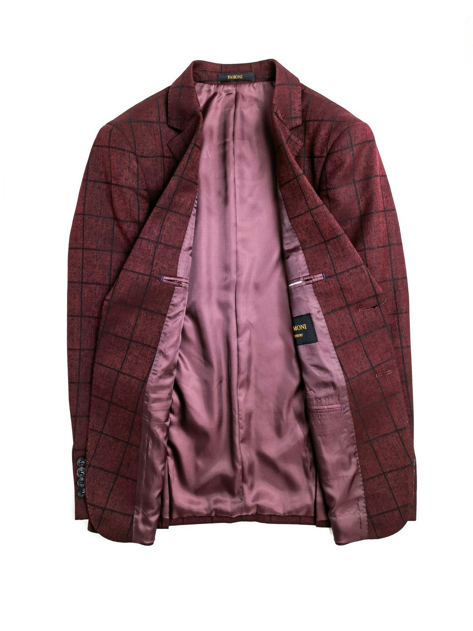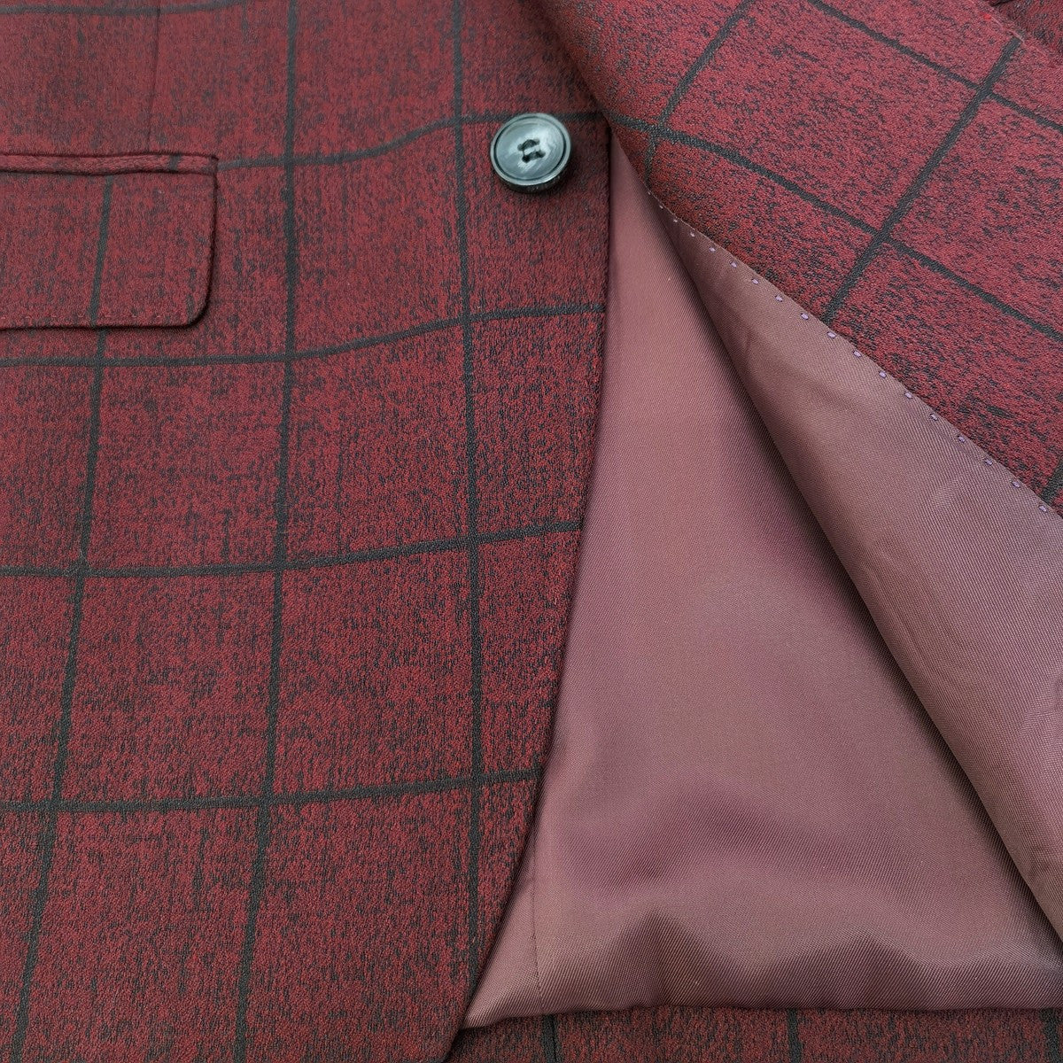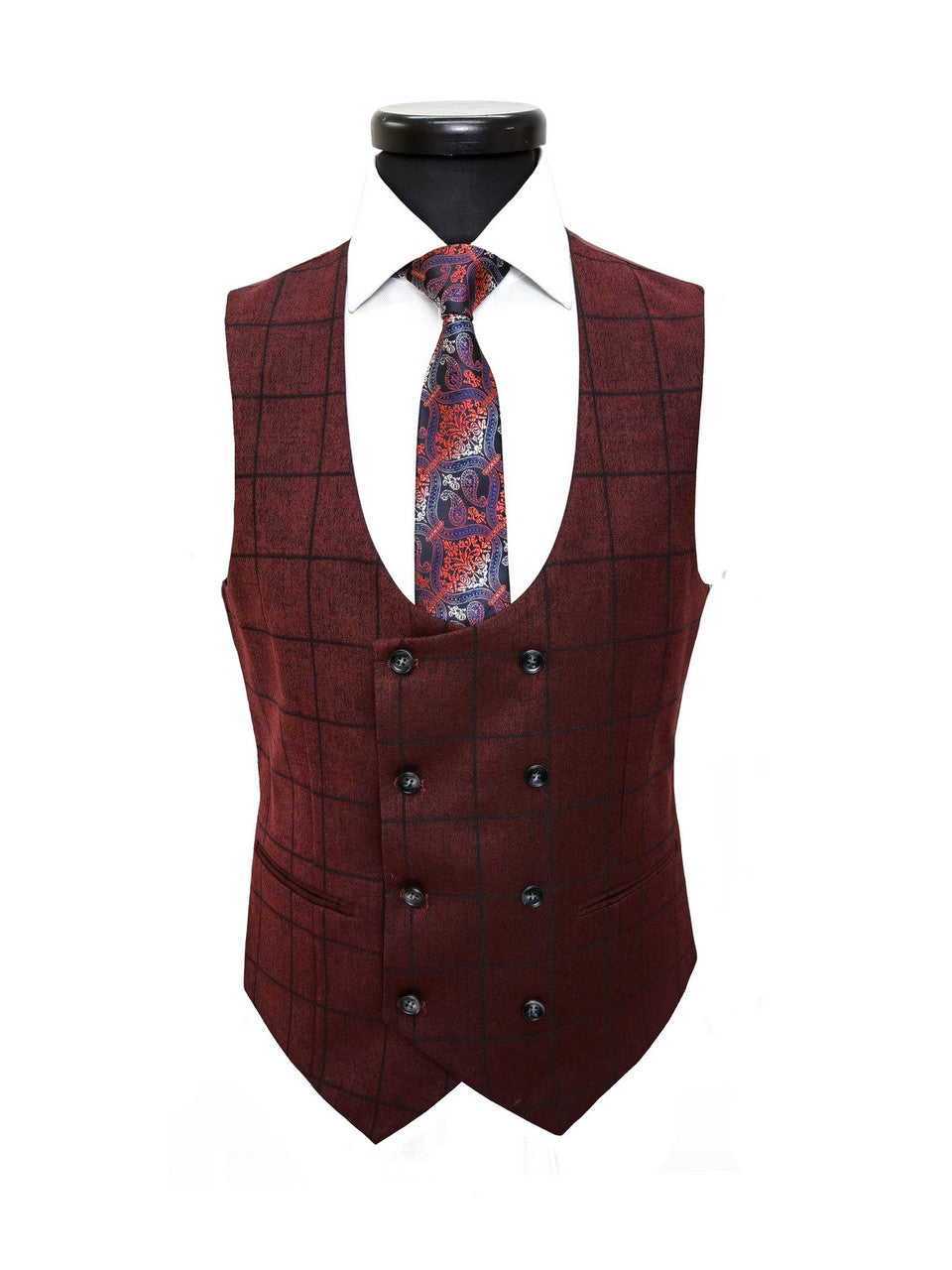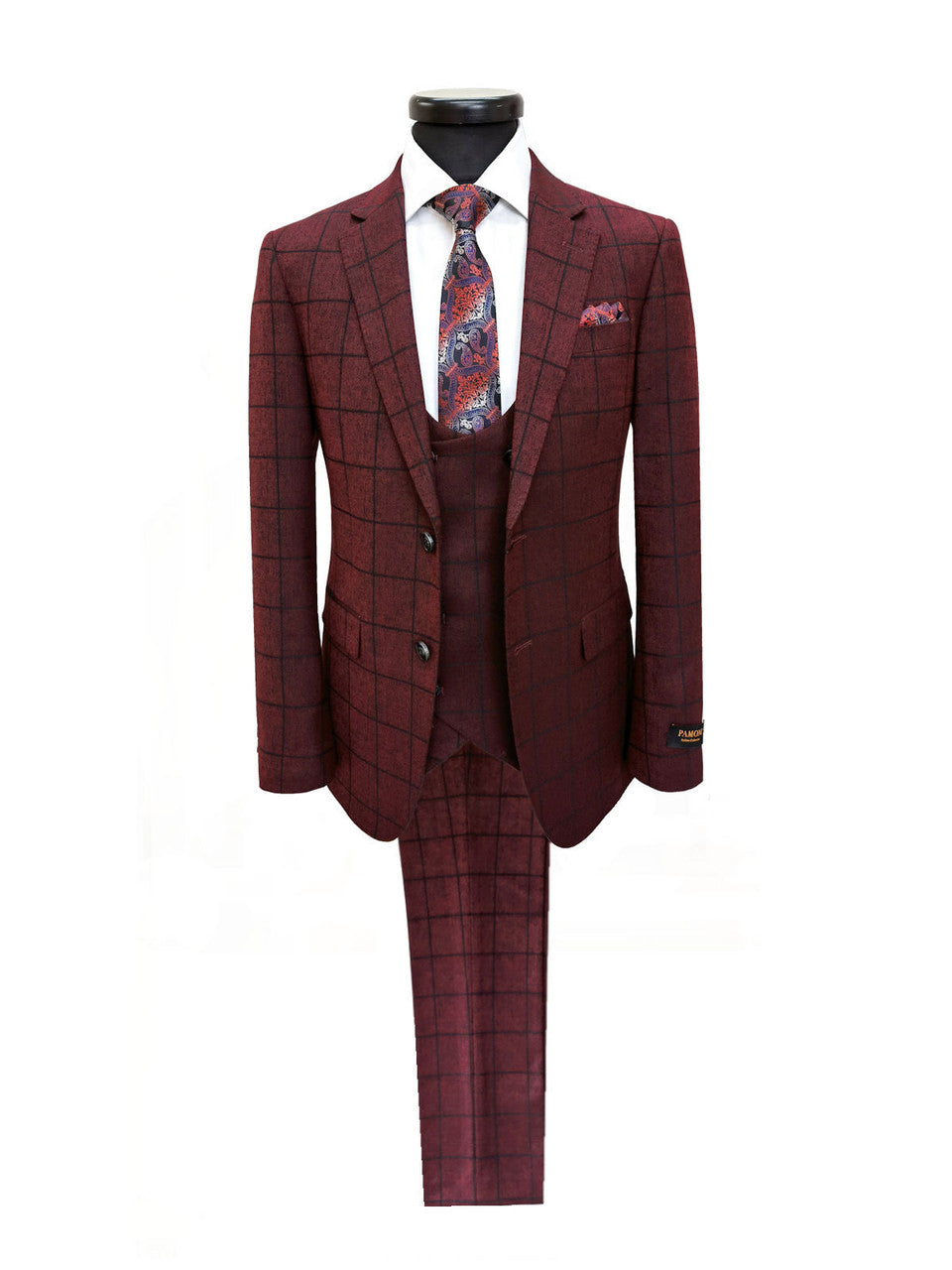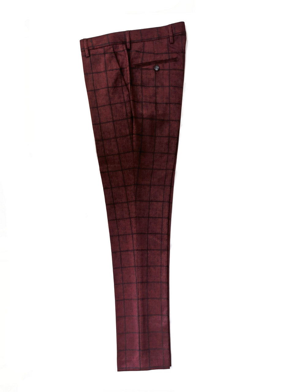 Traje de tres piezas a cuadros burdeos