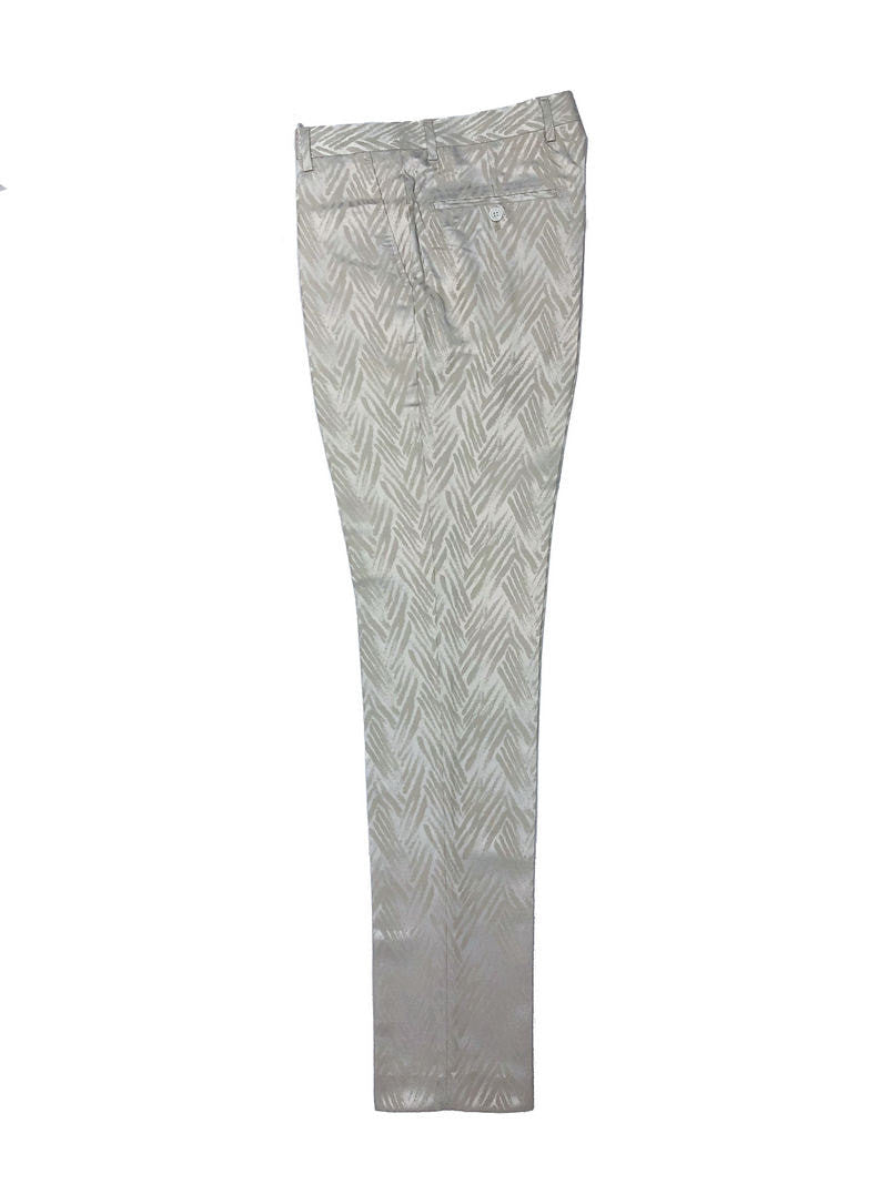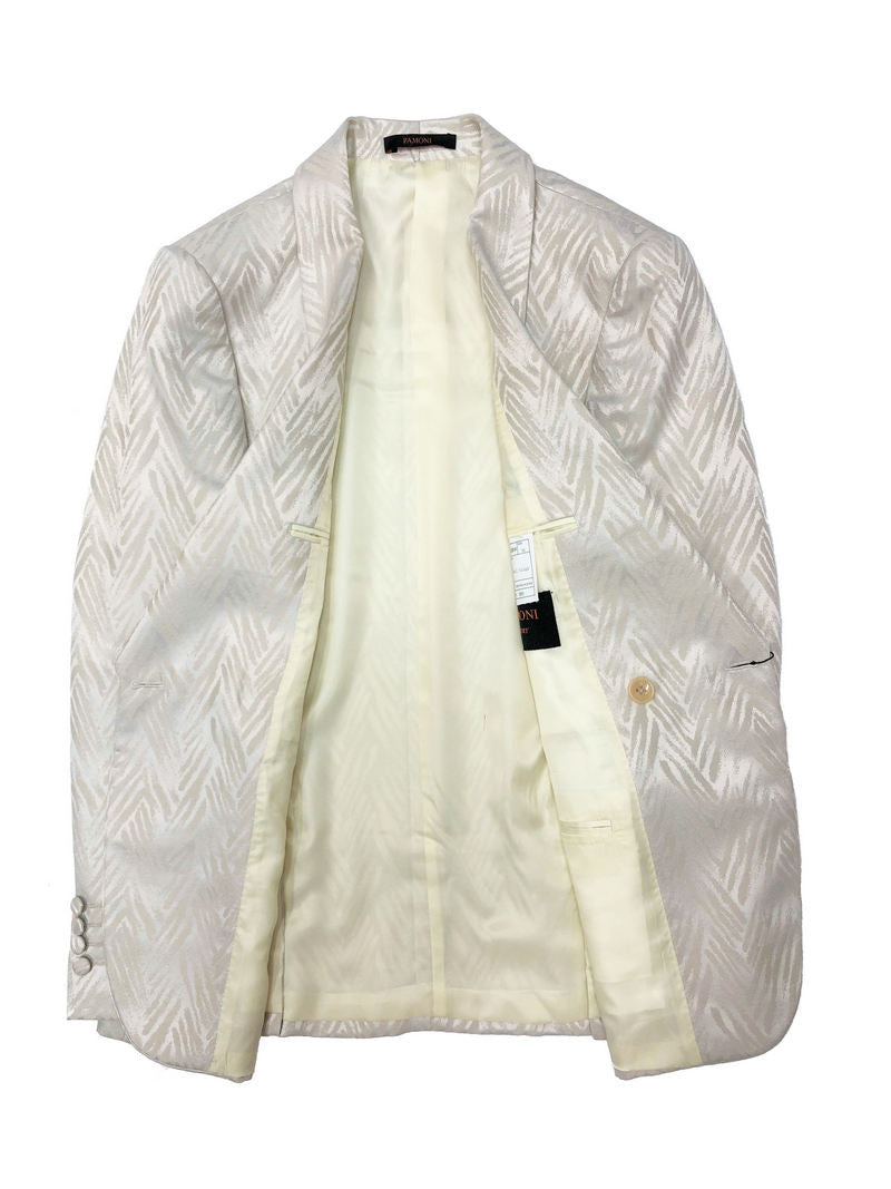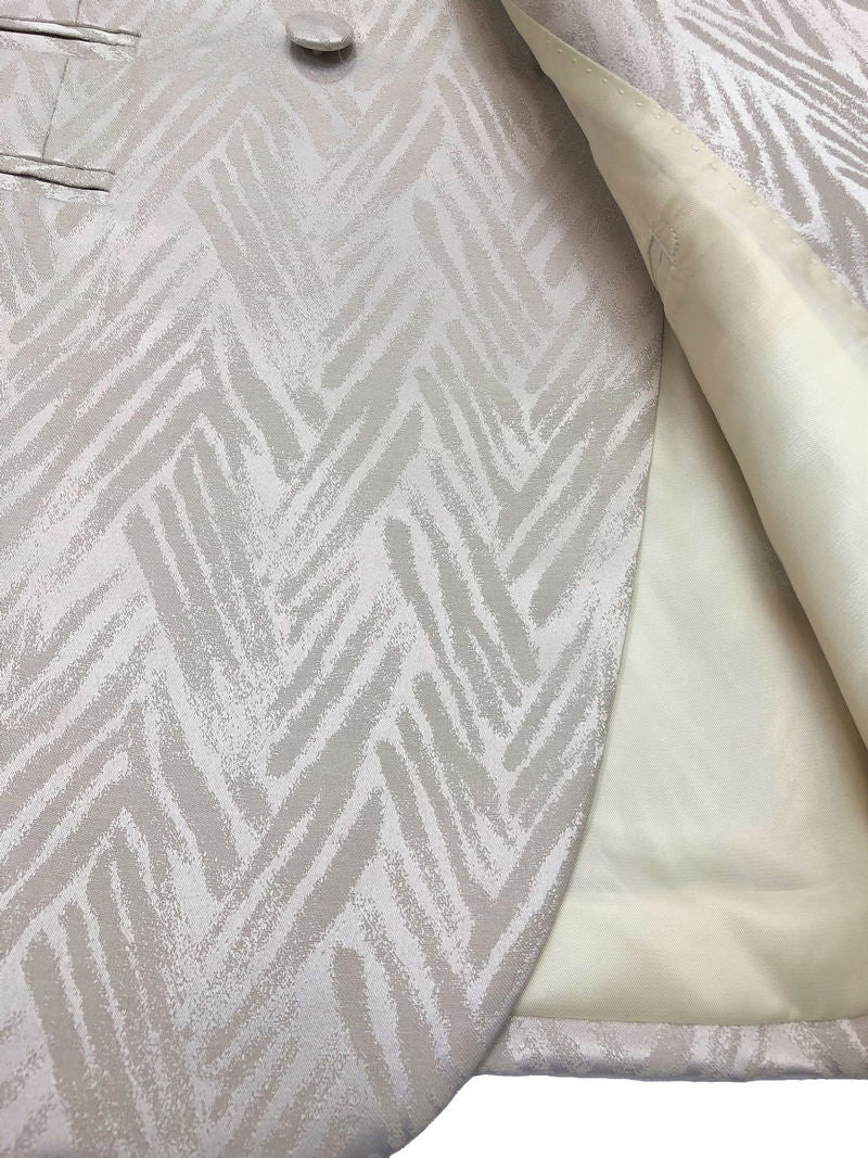 Traje de solapa chal color champán con diseño de chevrón