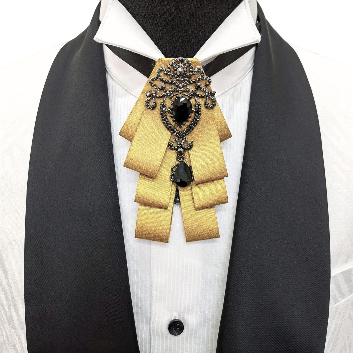 Una elegante pajarita de cinta diseñada para un estilo urbano y elegante. Está adornada con pedrería para darle un toque final. Combínala con una camisa de etiqueta y un esmoquin de solapa de satén para un toque de elegancia.