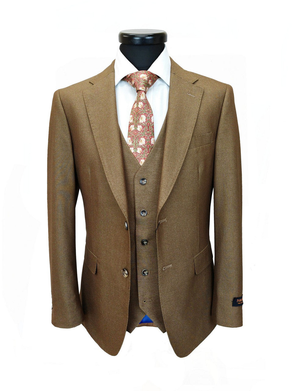 Traje de tres piezas marrón dorado
