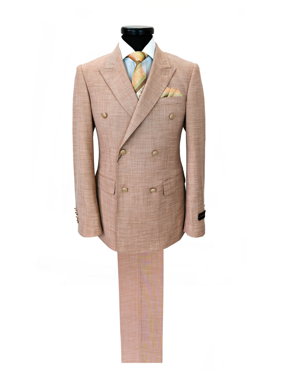Destaca con estilo con esta elegante chaqueta de traje cruzada y corte entallado , confeccionada en una refinada mezcla de lana color melocotón . Su corte moderno presenta solapas de pico, aberturas dobles y botones con detalles finos para un look sofisticado. Totalmente forrada en 100 % poliéster para mayor comodidad y estructura, esta chaqueta ofrece un ajuste favorecedor con un color fresco que la distingue de los tonos tradicionales. Perfecta para eventos de verano, bodas o elegantes ocasiones de negocios, es una opción segura para el caballero moderno.
