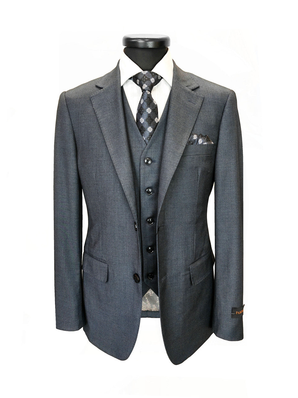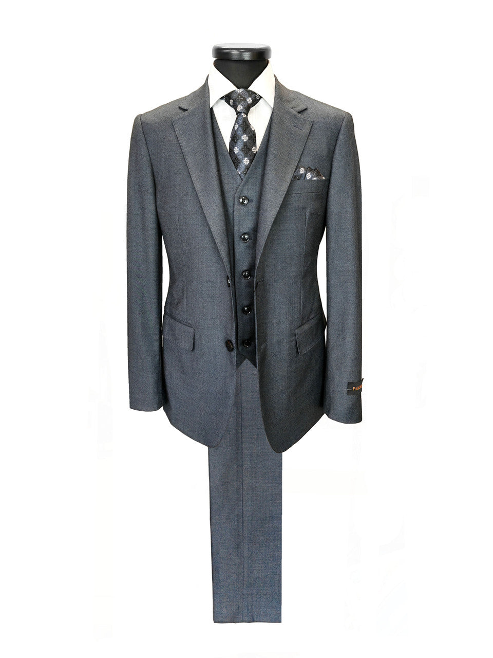 Traje de tres piezas de mezcla de lana para hombre, corte entallado, gris carbón