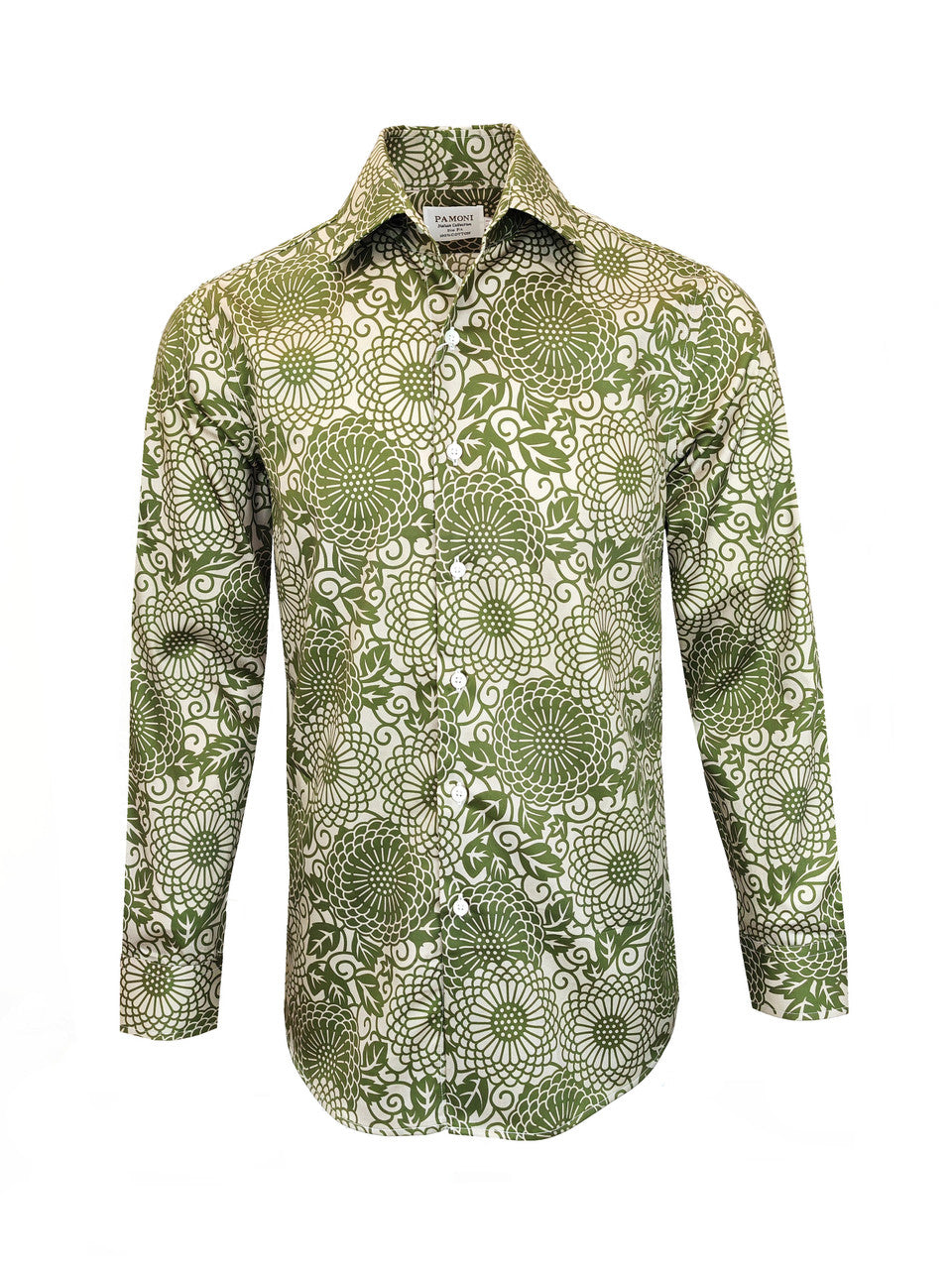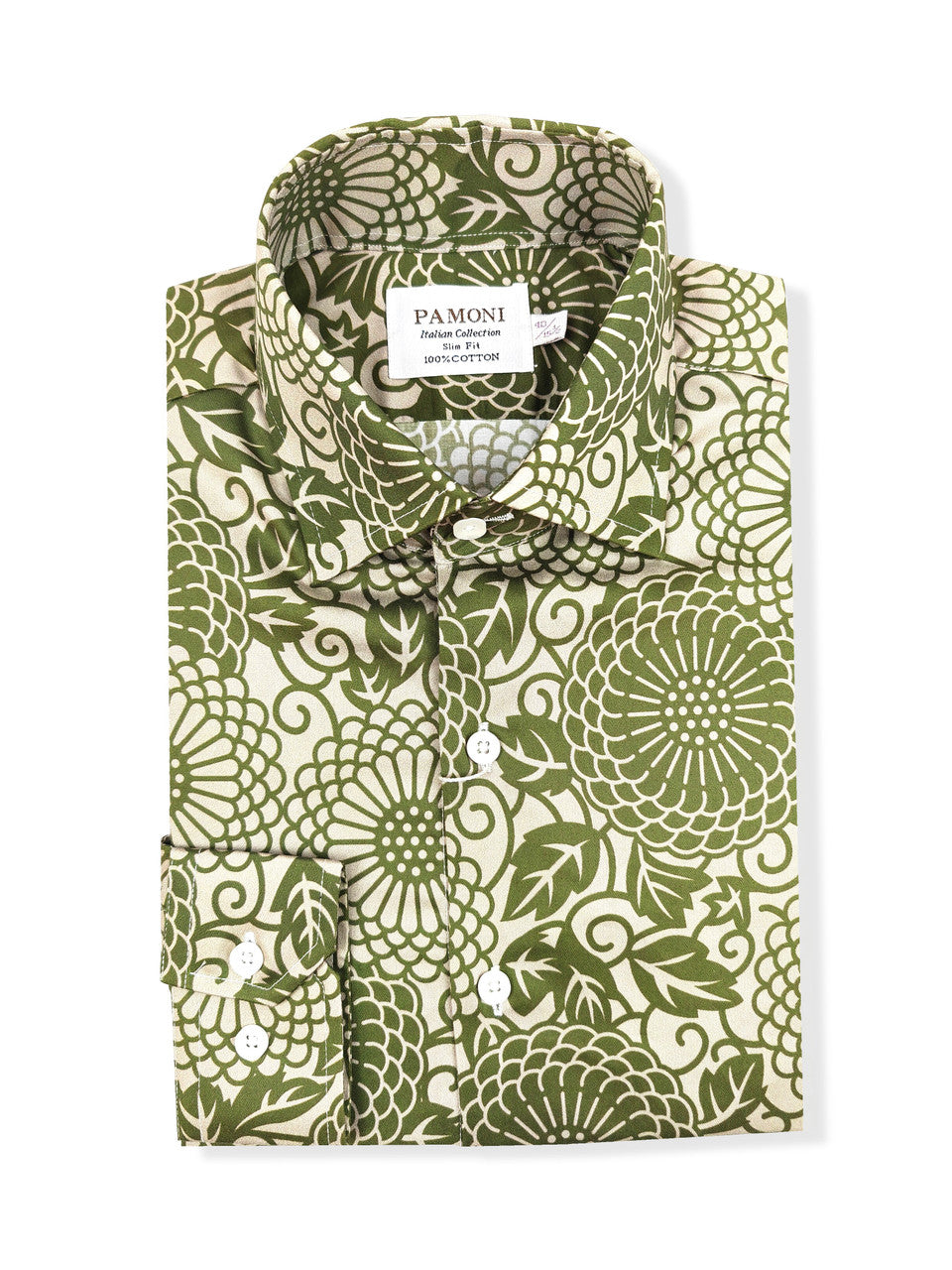 Camisa verde estampada de corte entallado para hombre – 100 % algodón fino