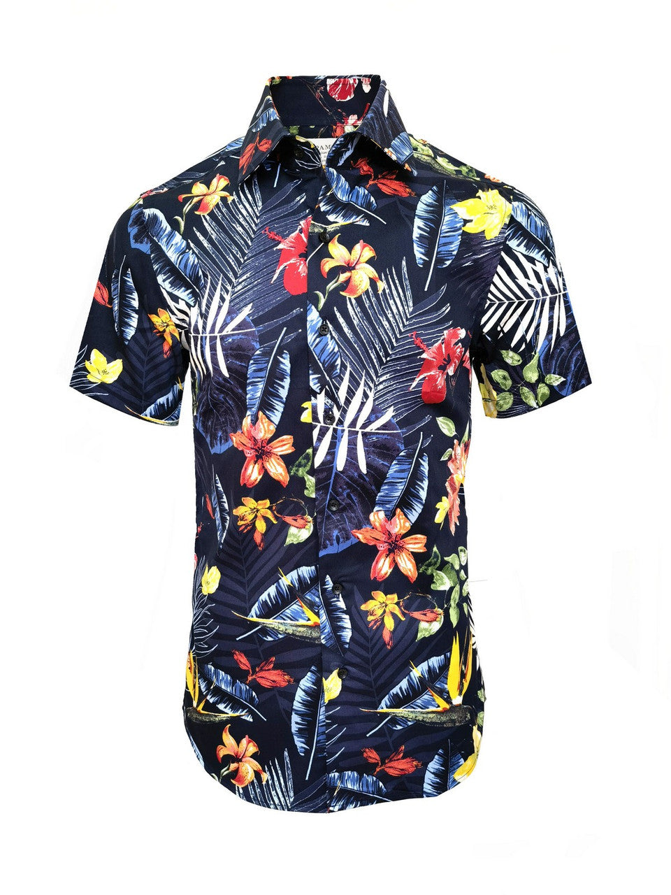 Camisa de manga corta con estampado floral azul marino