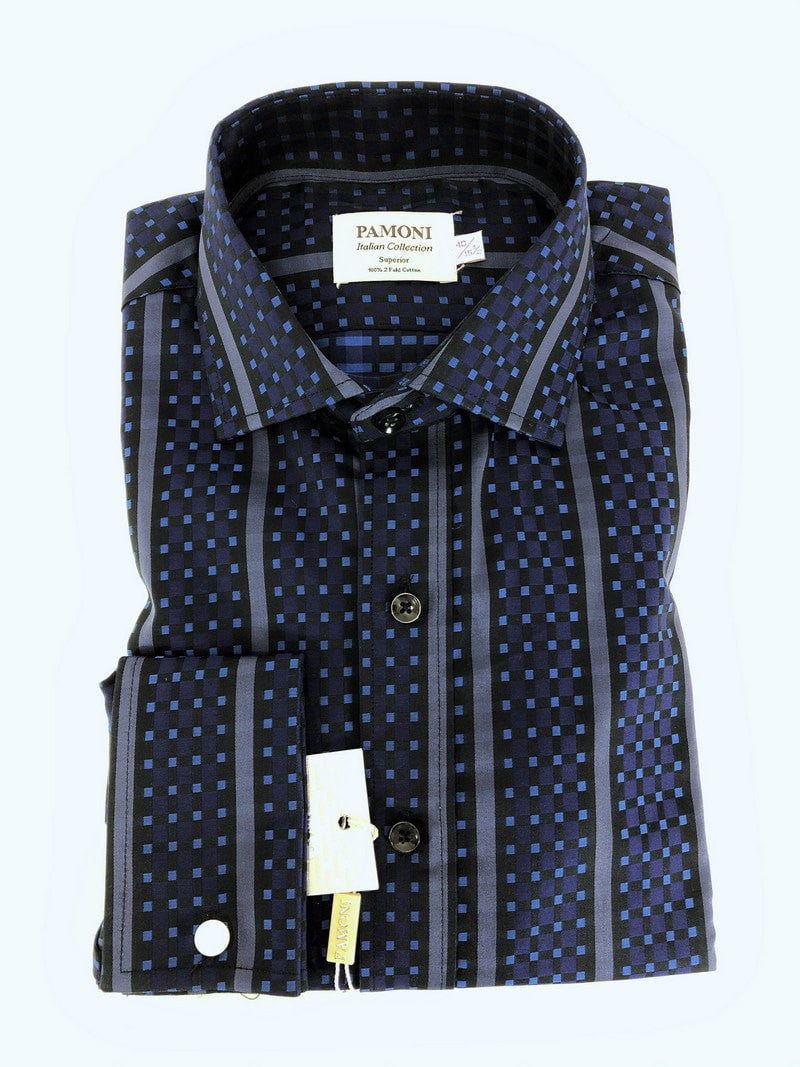 Camisa azul marino a cuadros con motivo de malla