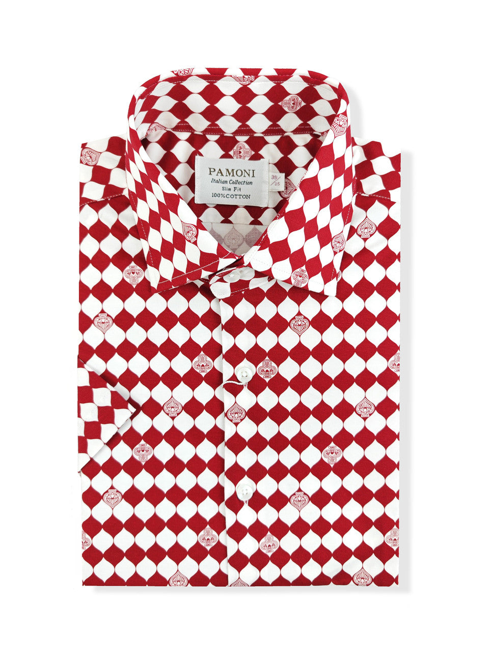 Camisa de manga corta con estampado de póker de diamantes rojos