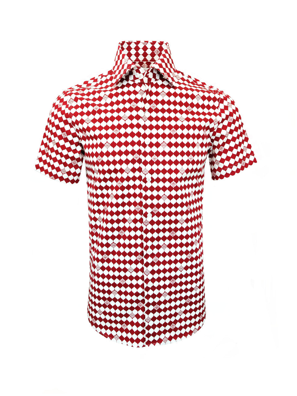 Mejora tu guardarropa informal con nuestra camisa de manga corta con estampado de póquer de diamantes rojos para hombre, que presenta un diseño cautivador hecho de algodón liviano superfino para máxima comodidad y estilo.