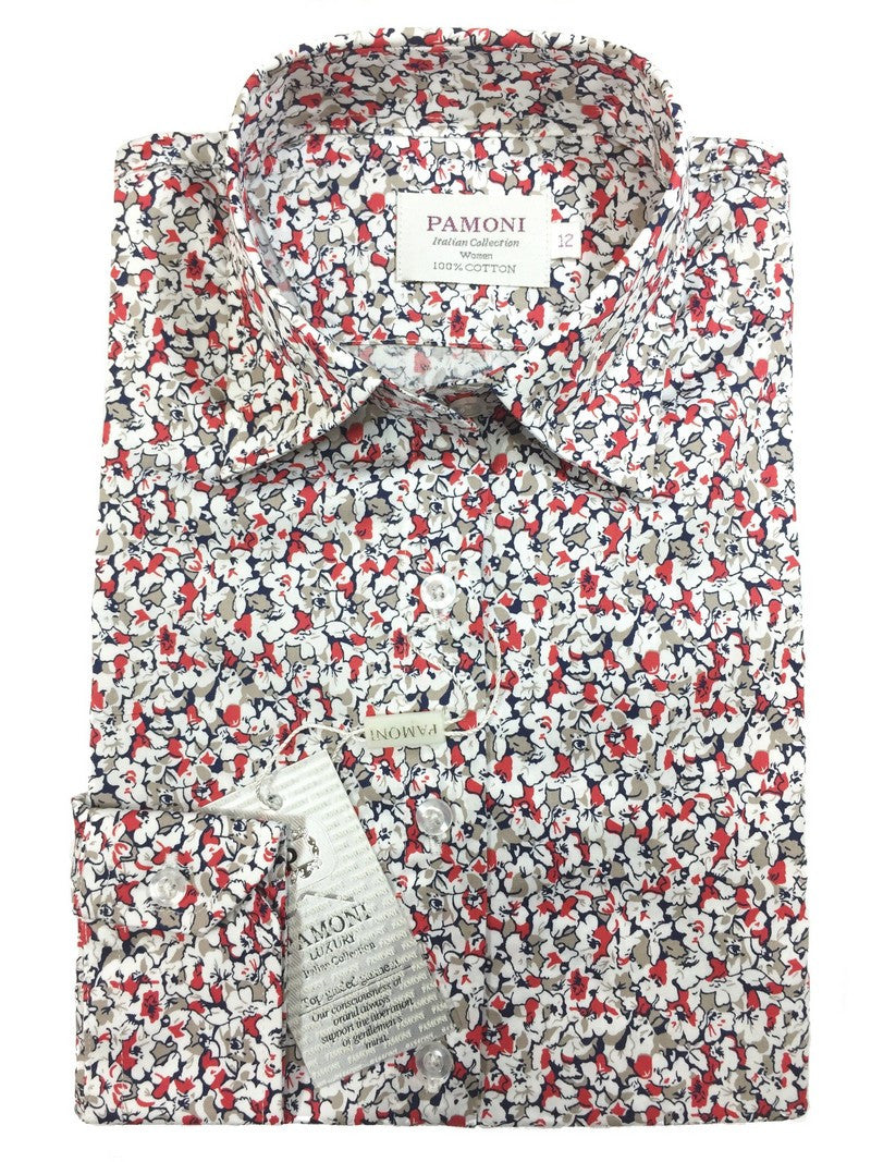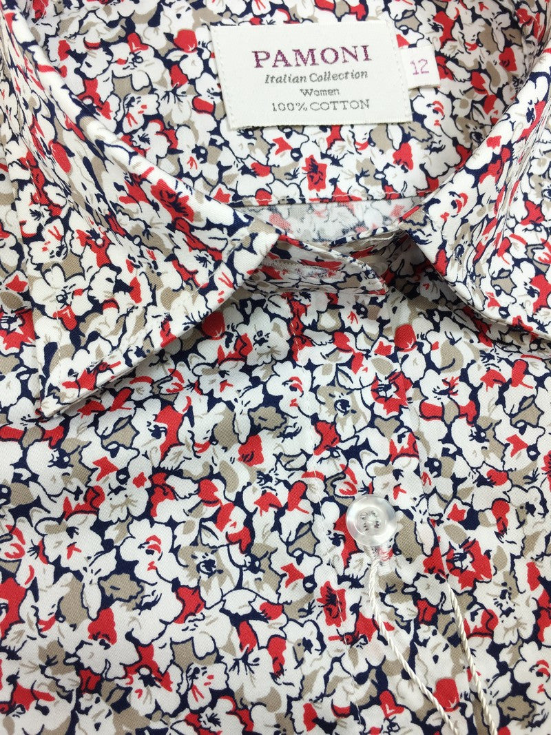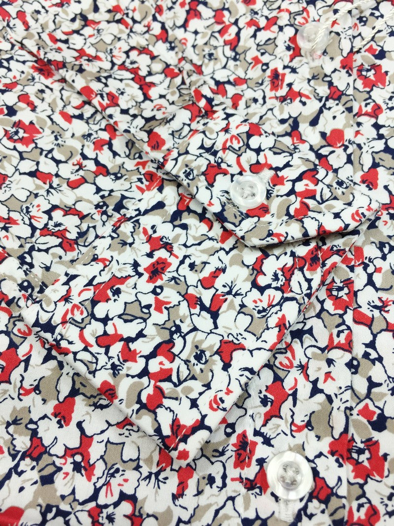 Camisa ajustada con estampado floral rojo y blanco