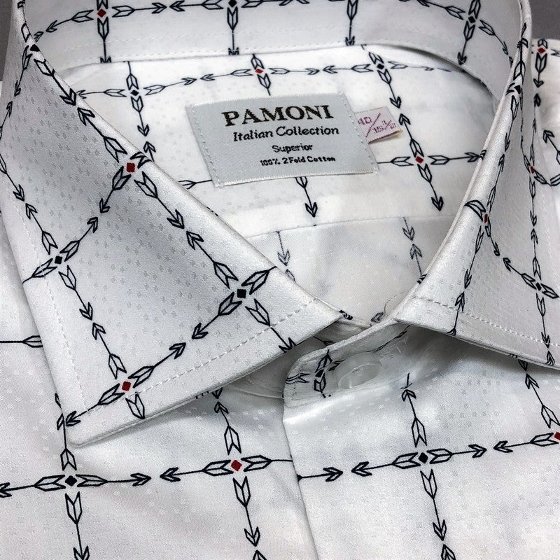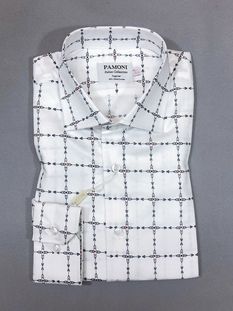 Camisa ajustada con estampado de flechas y cuadros blancos