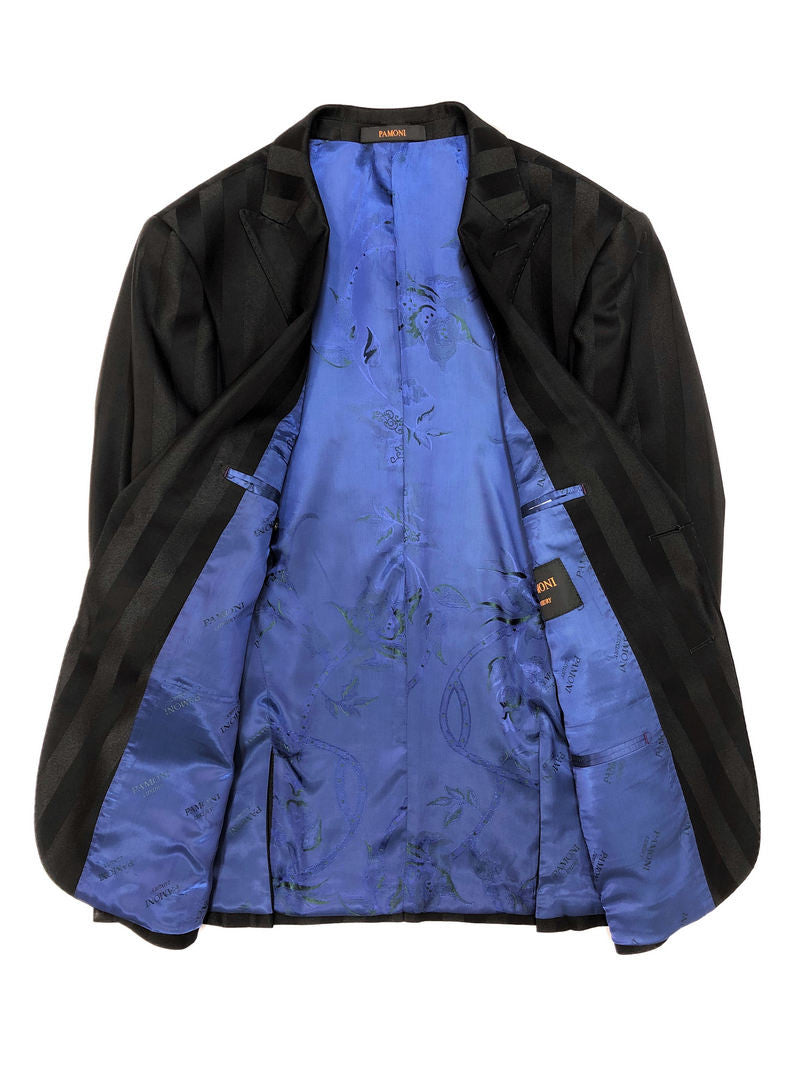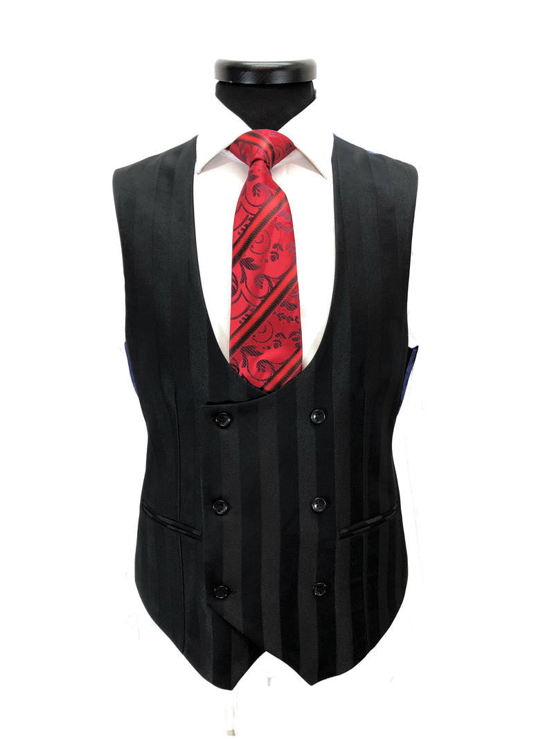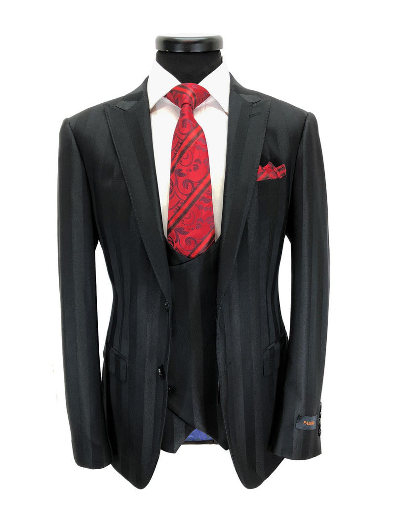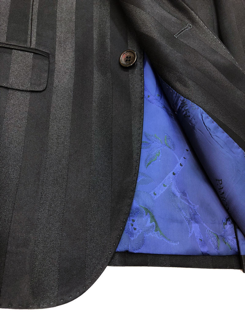 Costume trois pièces noir à rayures audacieuses et deux boutons
