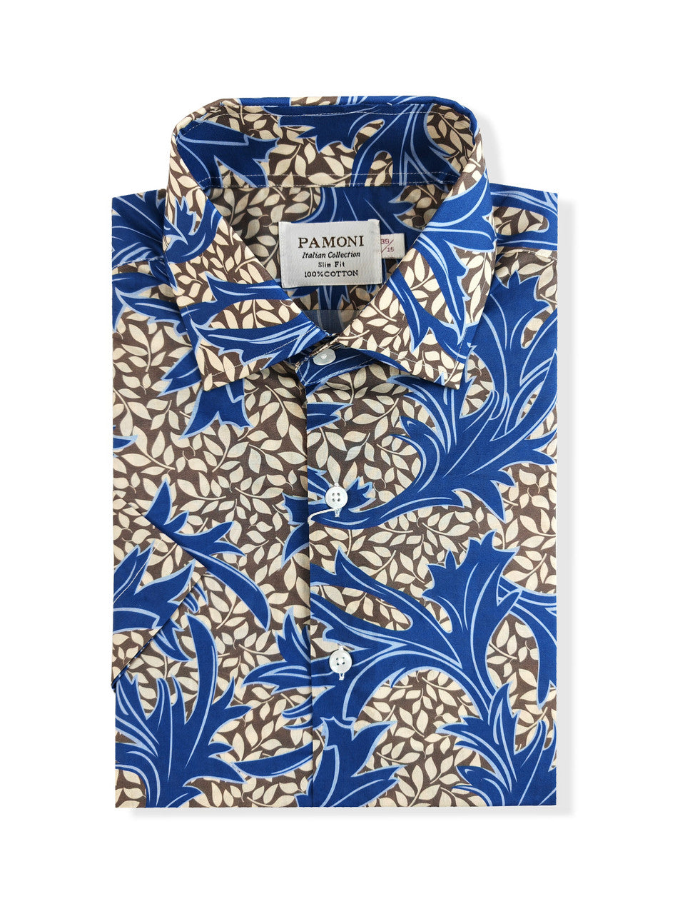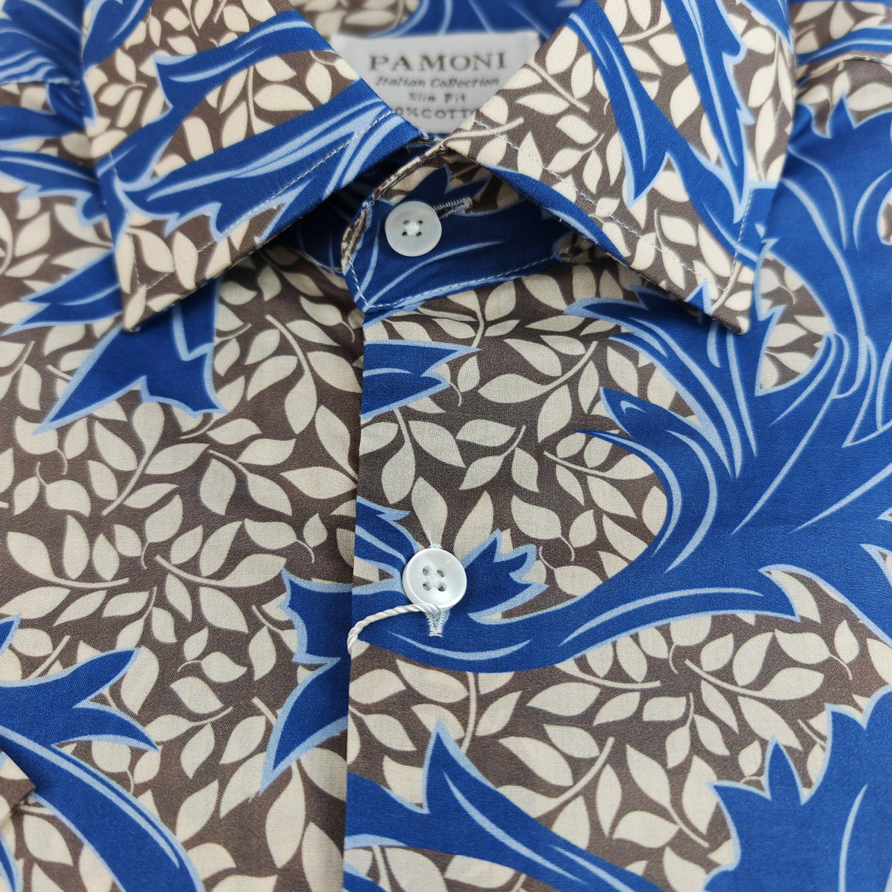 L'imprimé floral bleu et marron, au charme envoûtant, apporte une touche de sophistication et de raffinement à votre tenue, pour un style à la fois discret et élégant. Portée avec un jean pour un look décontracté ou avec un chino pour une allure plus sophistiquée, cette chemise sublimera à coup sûr votre style.