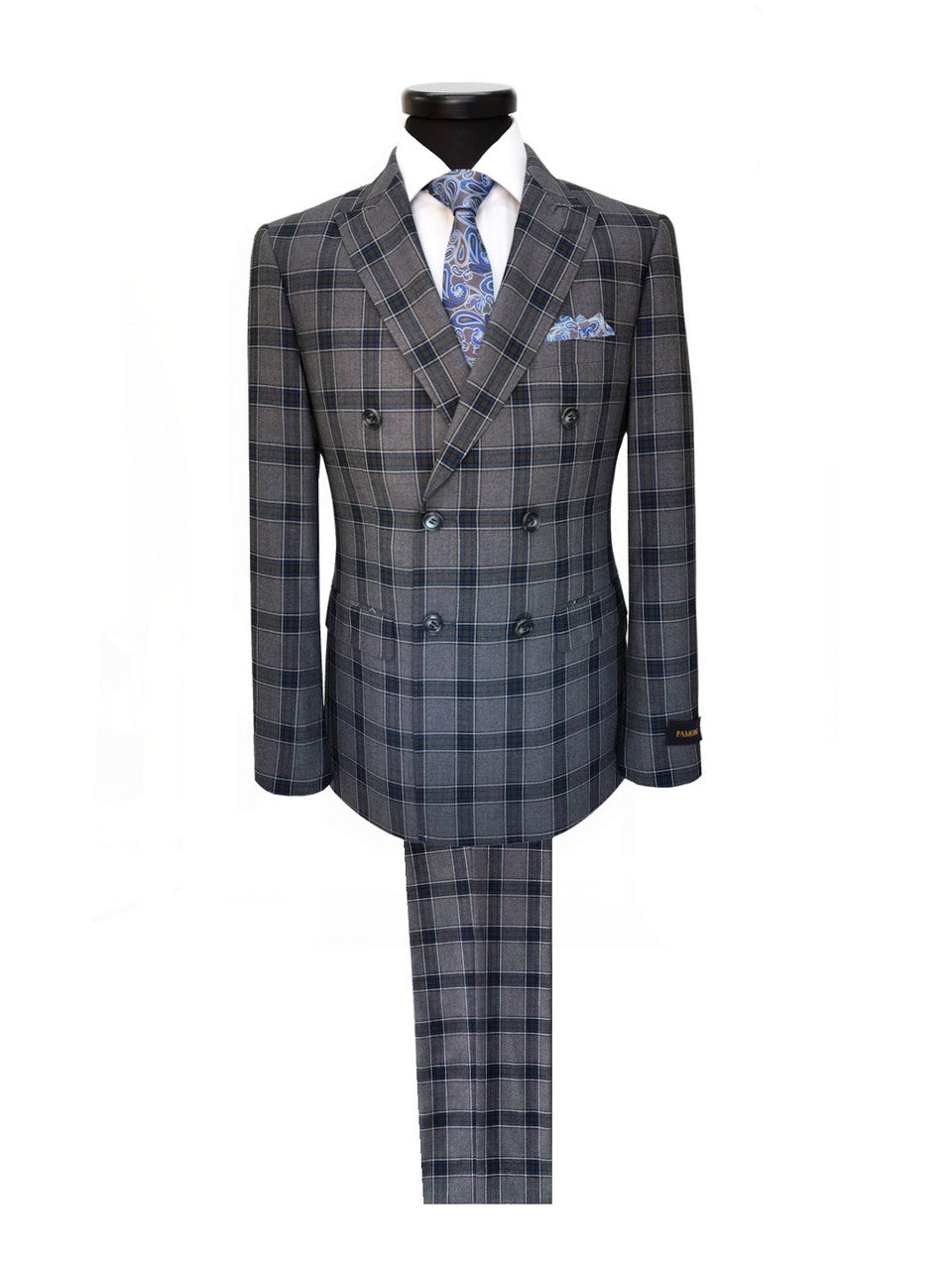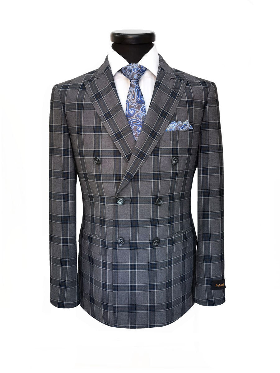 Costume croisé à carreaux gris foncé