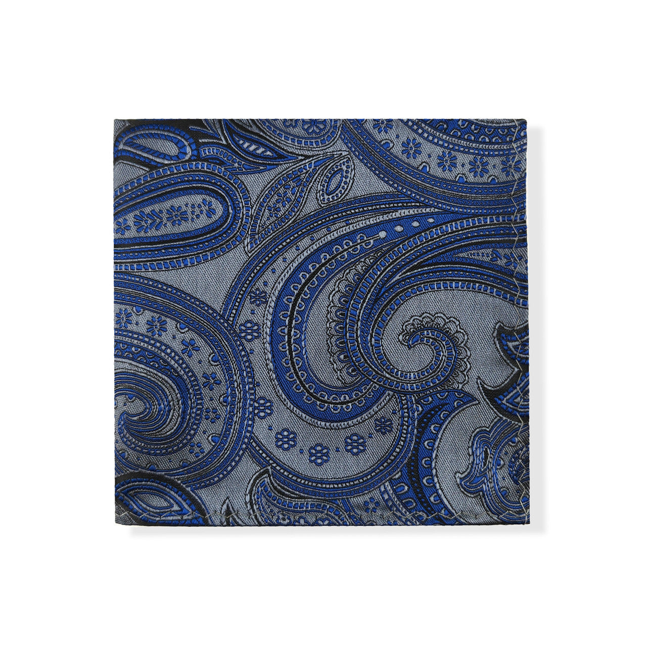 Ensemble cravate et pochette à motif cachemire gris et bleu