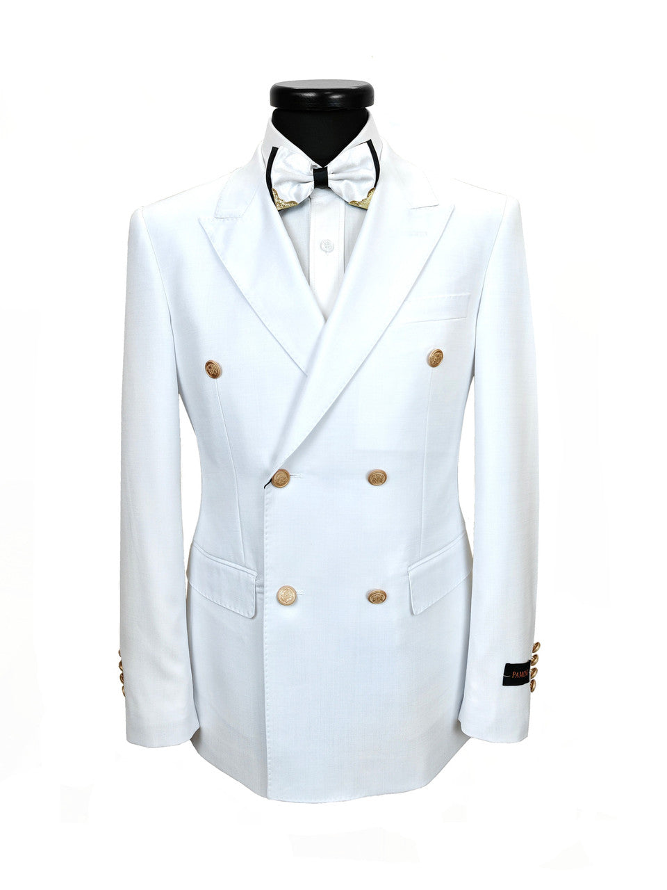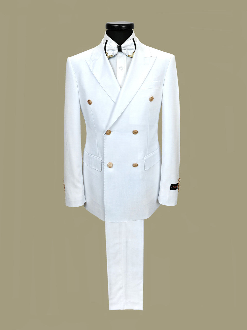 Costume homme blanc à double boutonnage, coupe ajustée, en laine mélangée, avec boutons dorés