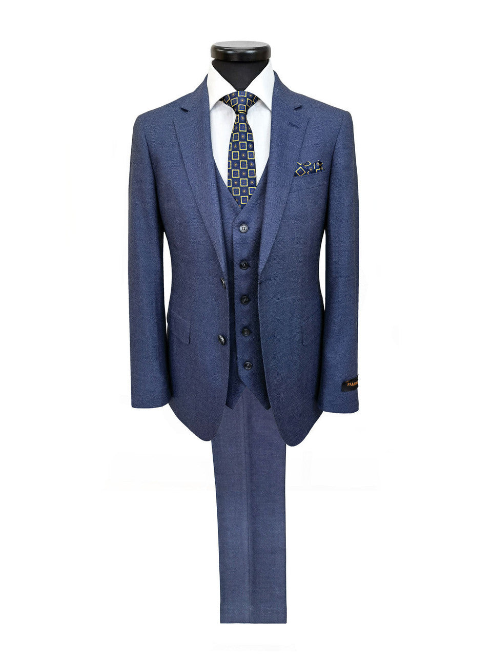 Costume trois pièces bleu moyen à œil-de-perdrix