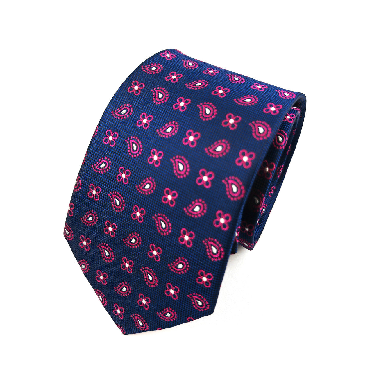 Ensemble cravate et pochette géométriques bleu marine et magenta