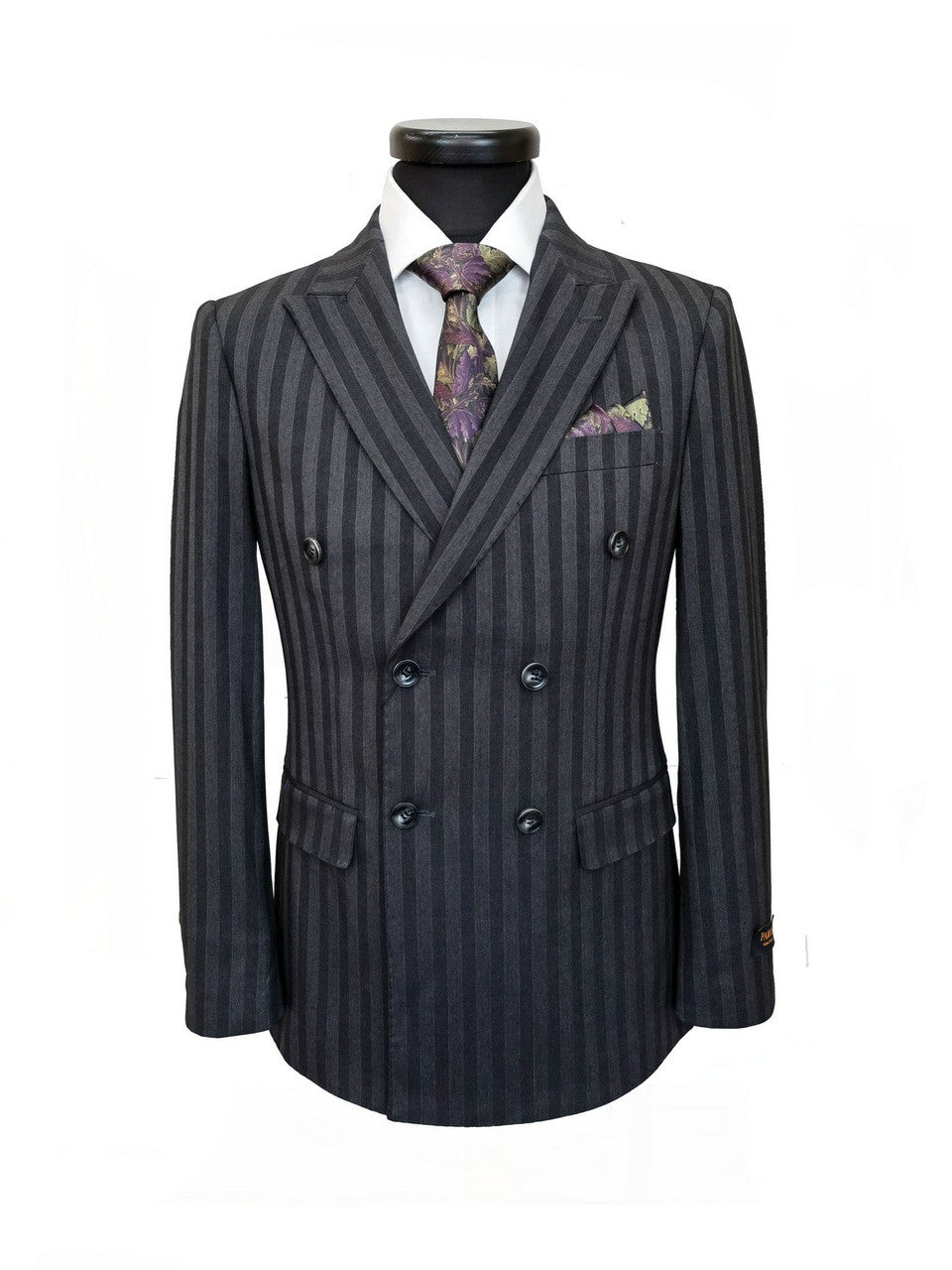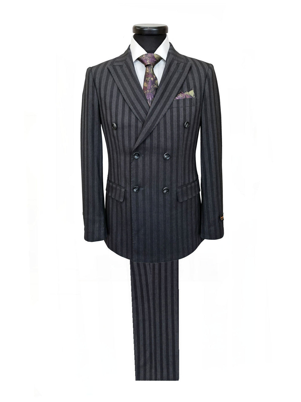 Charcoal Bold Stripe Double Breasted Suit