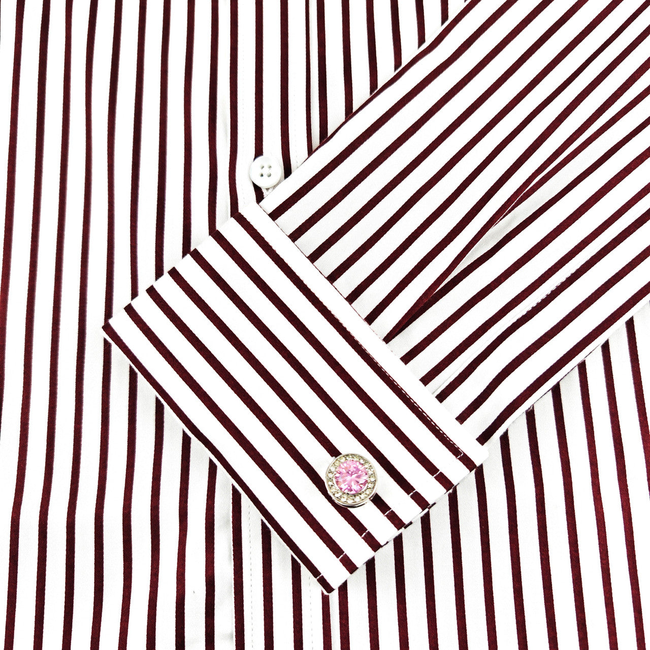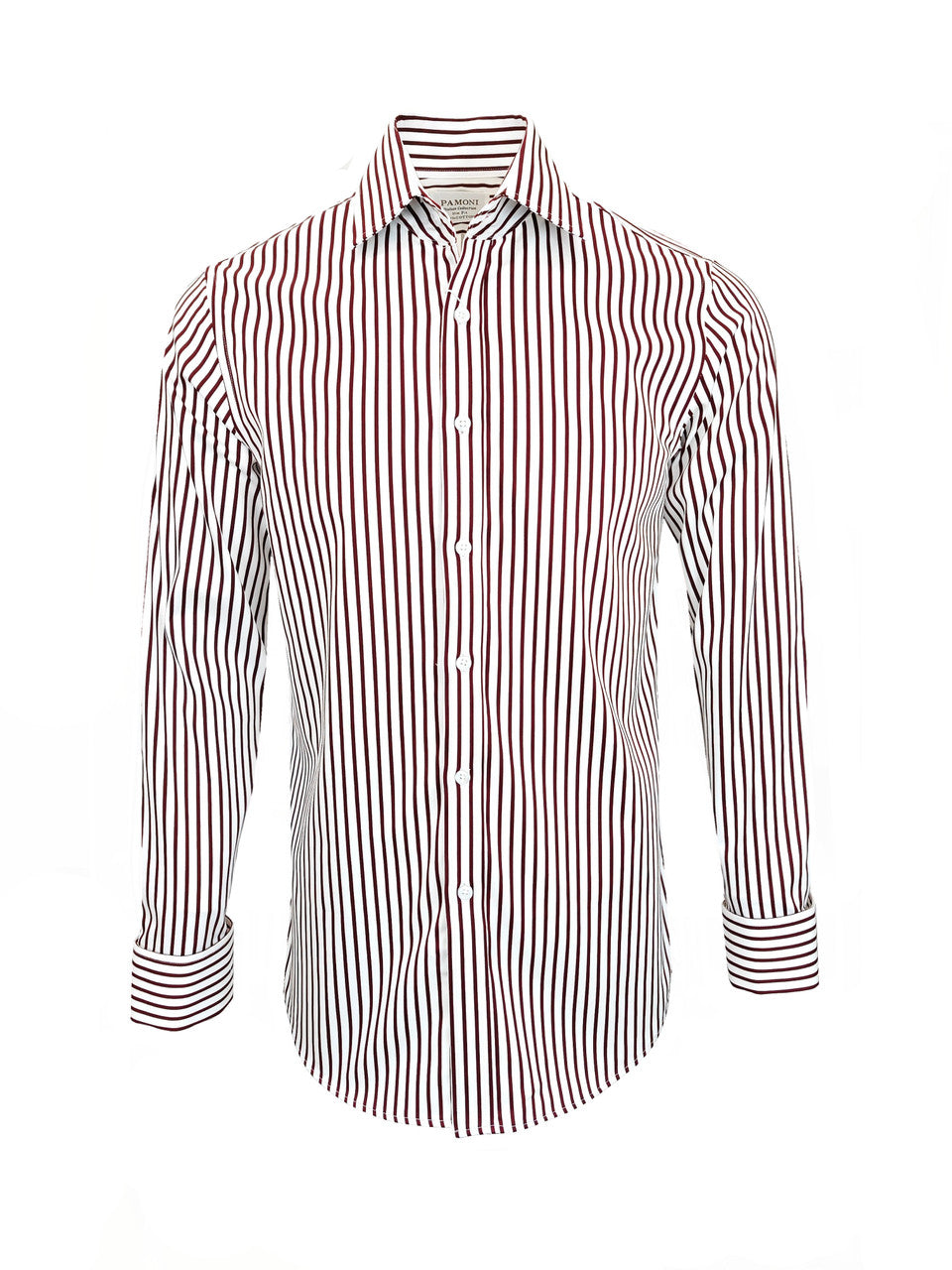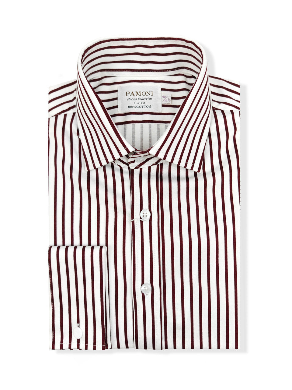 Men's Slim Fit Red & White Striped Shirt – 100% Fine Cotton, Double Cuff