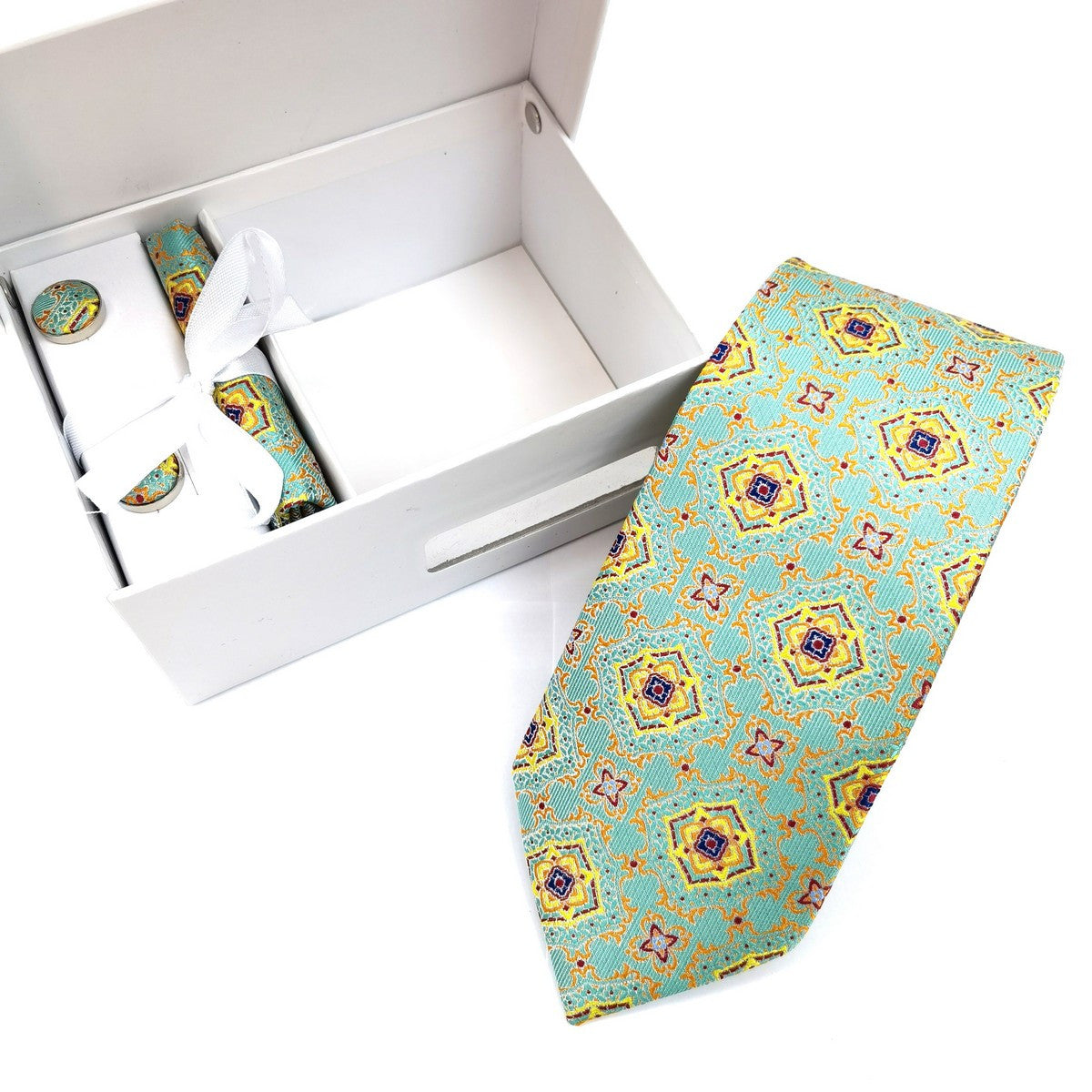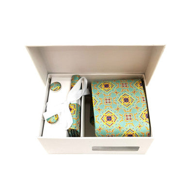 Mint Yellow Geometric Tie & Cufflinks Set