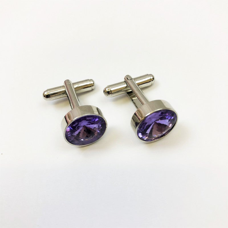 These metal alloy cufflinks are embellished with polished lilac rhinestones. Handcrafted to a high standard, they offer a colourful & sparkling touch to any attire and will work with the majority of your tailoring and double cuff shirts. All Pamoni cufflinks come complete with their very own luxury Pamoni presentation box – making them perfect for gifting.