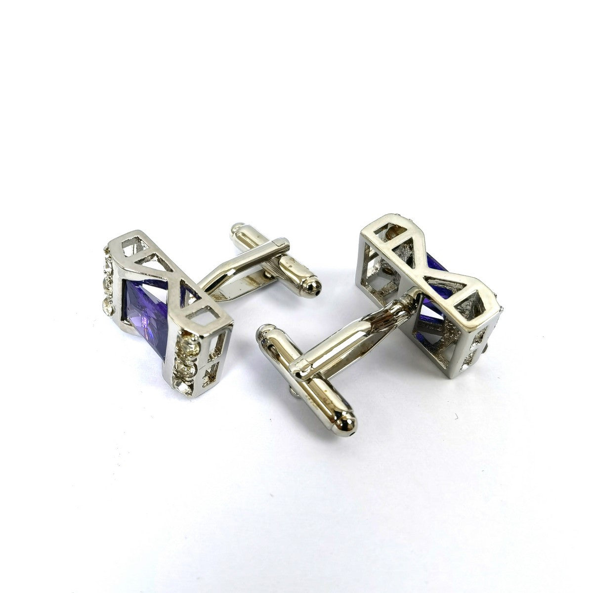 These Purple & clear crystal regtangular cufflinks are an elegant option, handcrafted to a high standard, they offer a colourful & sparkling touch to any attire and will work with the majority of your tailoring and double cuff shirts. They also come complete with their very own luxury Pamoni presentation box – making them perfect for gifting.