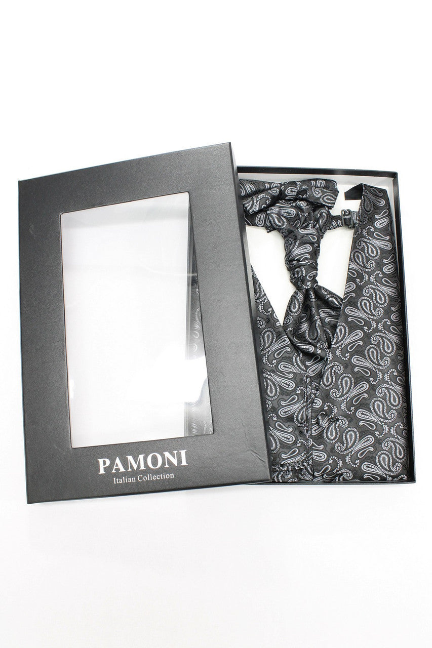 Conjunto de chaleco y corbata con estampado paisley gris oscuro