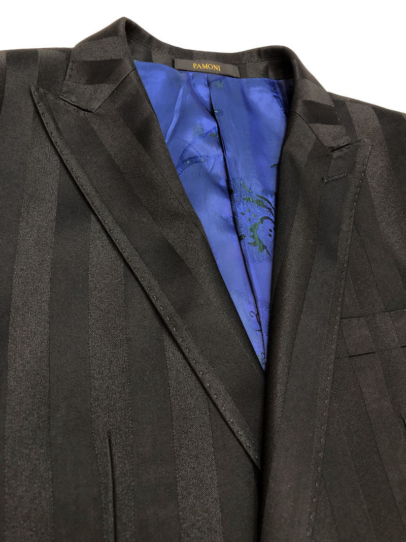 Costume trois pièces noir à rayures audacieuses et deux boutons