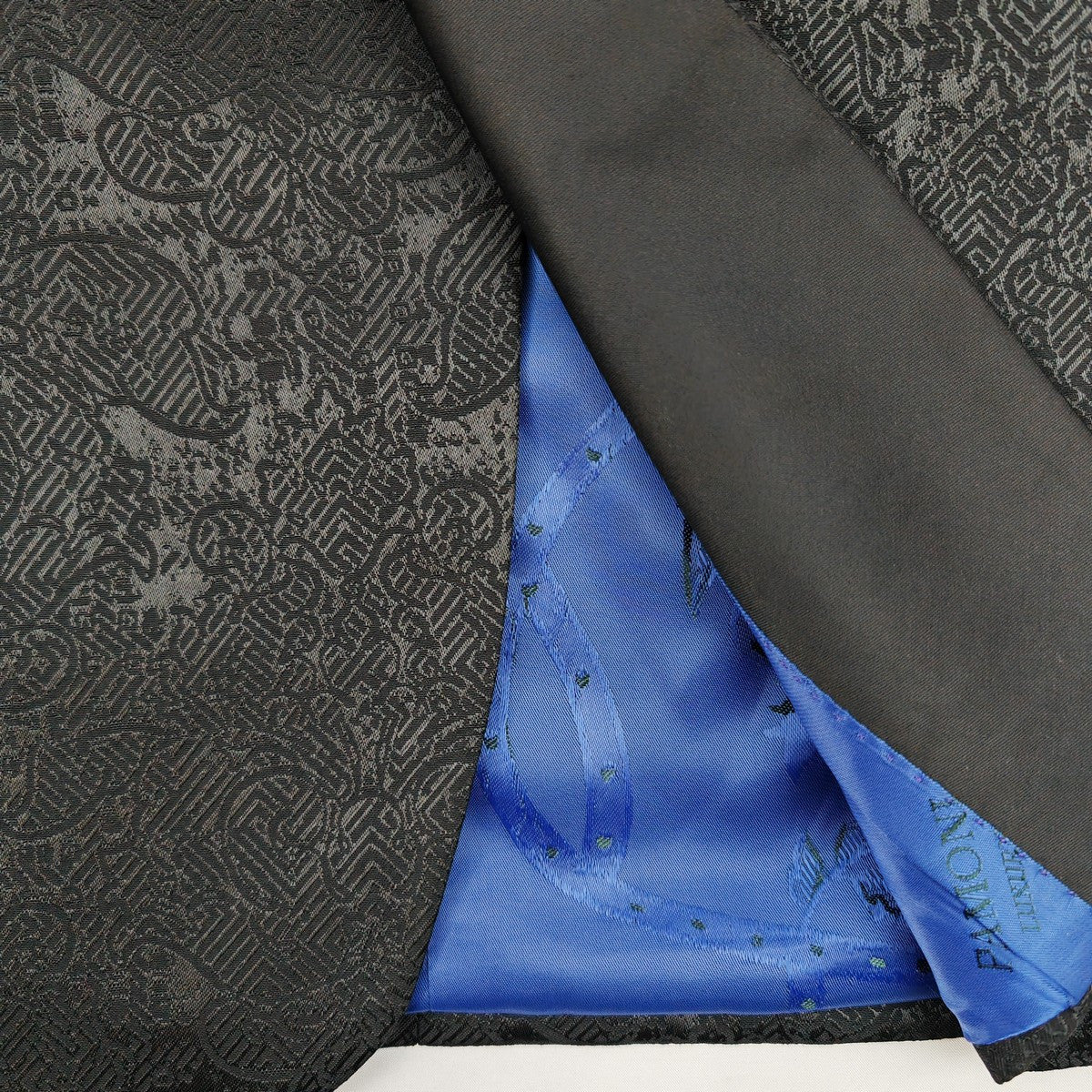 Smoking trois pièces noir à motif floral