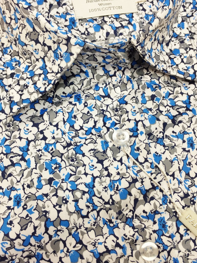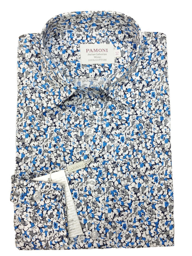 Chemise cintrée à imprimé floral bleu et blanc