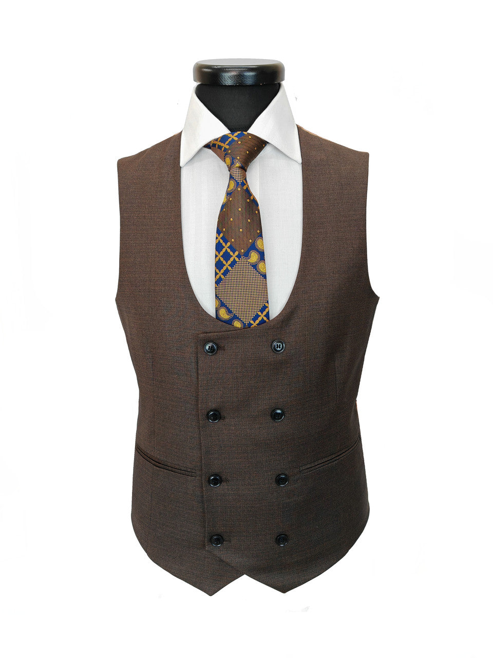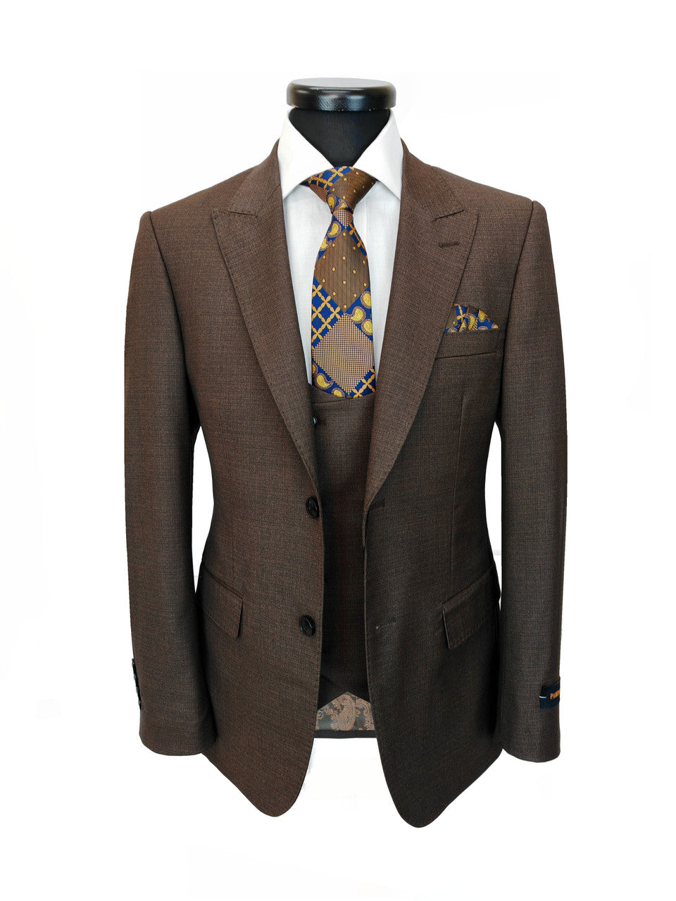 Faites une entrée remarquée avec ce costume trois pièces marron classique, à la coupe slim contemporaine. Confectionné dans un luxueux mélange de laine, ce costume comprend une veste à simple boutonnage, un gilet assorti et un pantalon tailleur – idéal pour les occasions formelles ou une tenue quotidienne élégante. La veste présente des revers crantés, une fermeture à deux boutons et des poches à rabat, tandis que sa doublure intégrale (100 % polyester) assure une superposition fluide et un confort optimal tout au long de la journée. Complétez votre tenue avec une chemise impeccable et une cravate pour une élégance intemporelle.