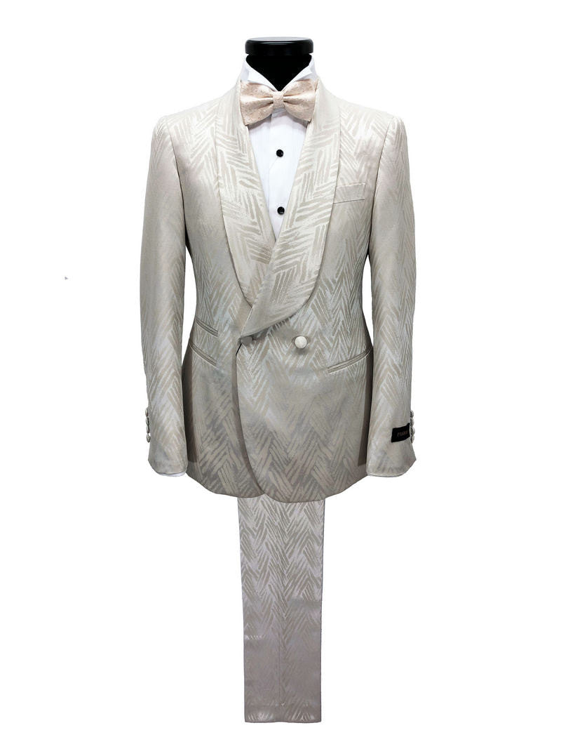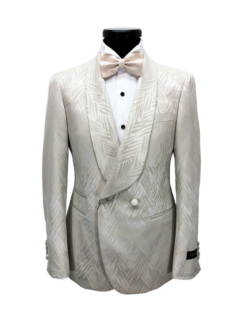 Costume à revers châle en cuir champagne à chevrons