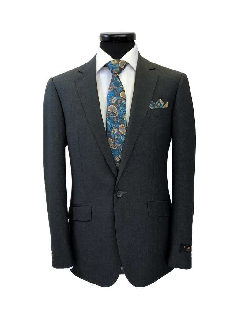 Costume gris anthracite à un bouton, coupe classique