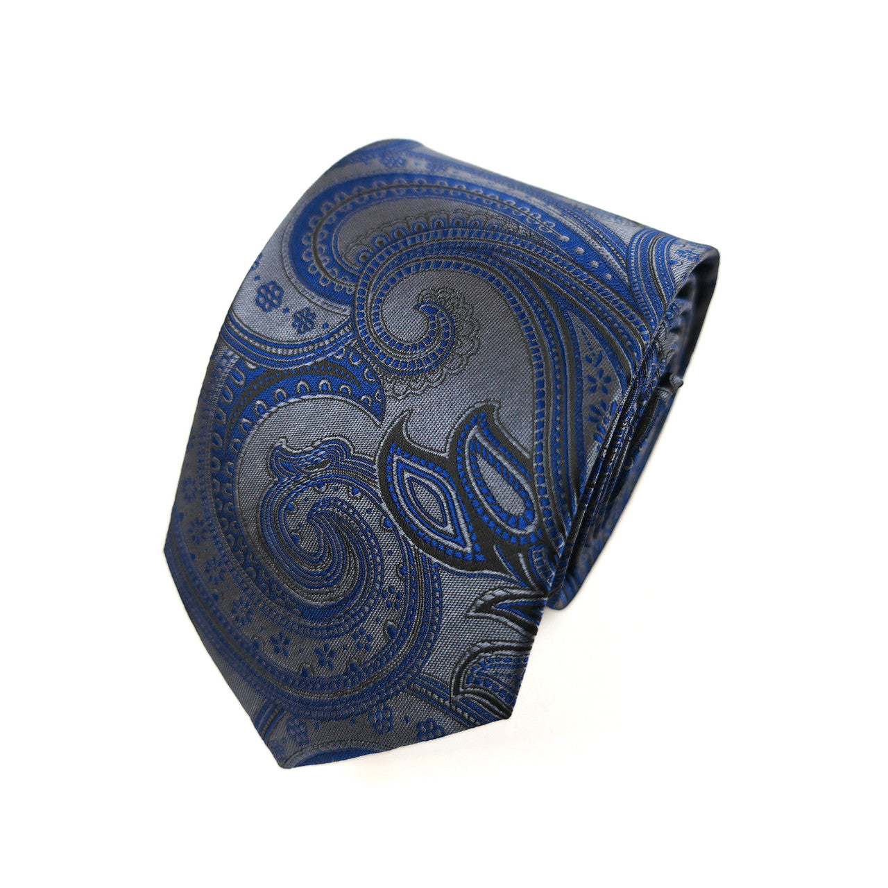 Ensemble cravate et pochette à motif cachemire gris et bleu