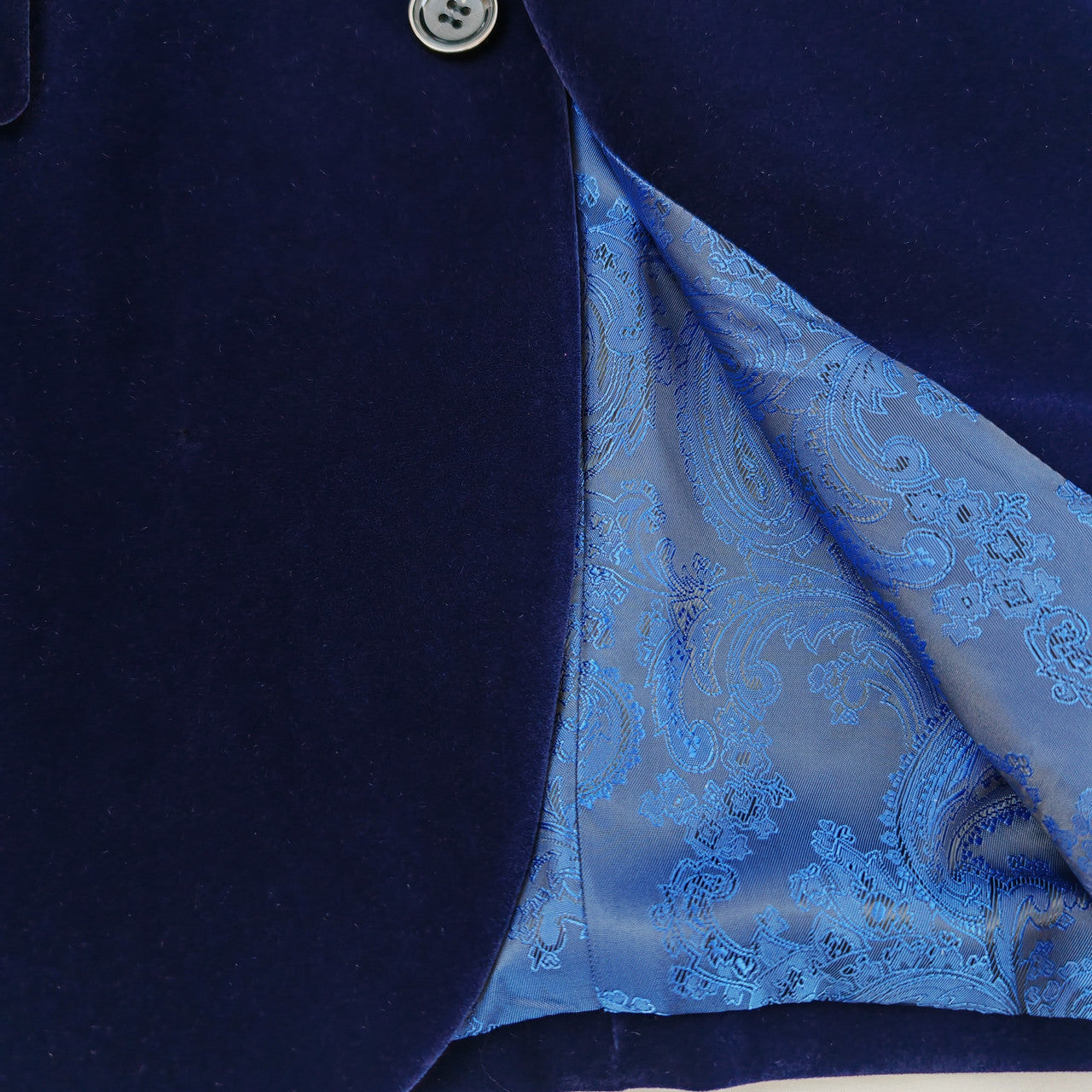 Ce blazer en velours bleu marine pour homme est un classique intemporel, aussi à l'aise en toutes occasions. Il présente un col cranté, deux boutons, une coupe ajustée, des fentes latérales doubles et des poches droites. Composé à 75 % de polyester et à 25 % de nylon, il est doublé de polyester. Nettoyage à sec uniquement.