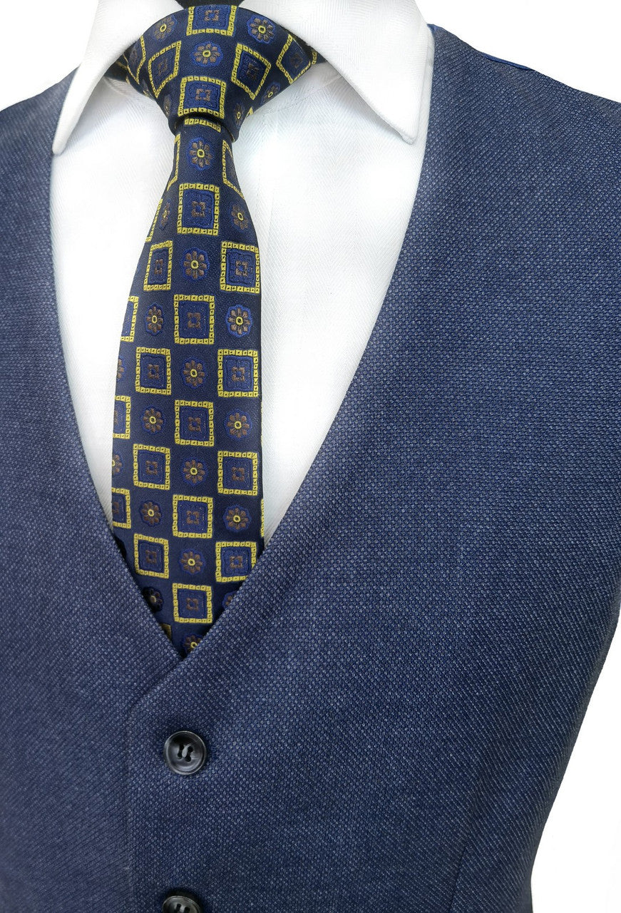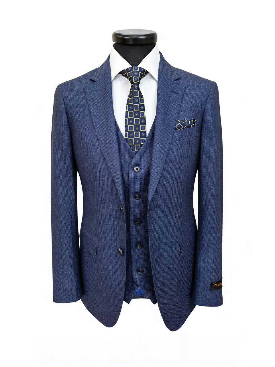 Costume trois pièces bleu moyen à œil-de-perdrix