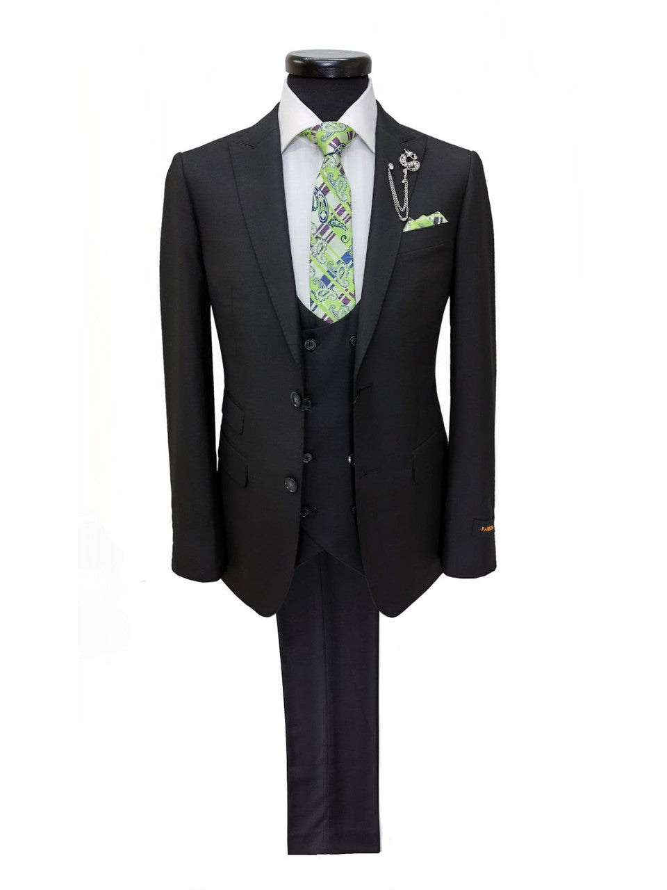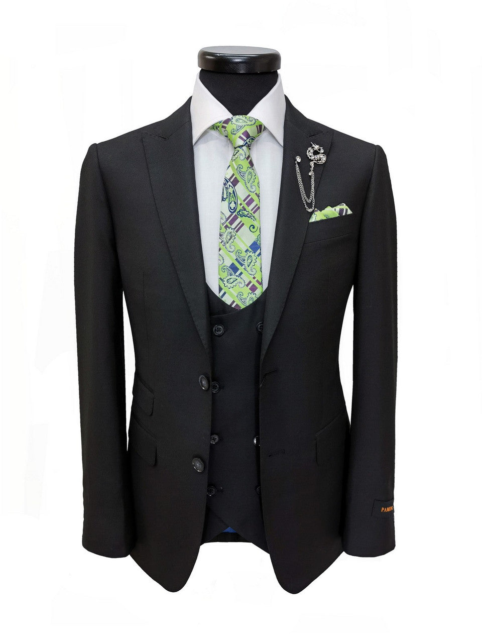 Slim fit Peak lapel Fully lined Two button Double Breasted Waistcoat Ticket pocket Single breasted Four button cuff Double side vents 35% Wool, 65% Polyester Lining: 52% Polyester, 48% Viscose Product code: 1PA31200