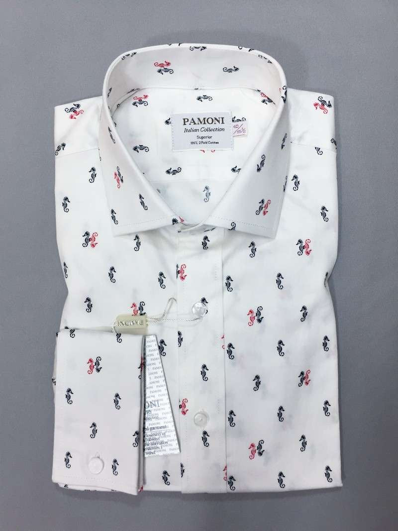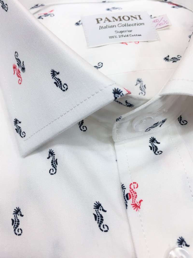 White Seahorse Print Slim Fit Shirt